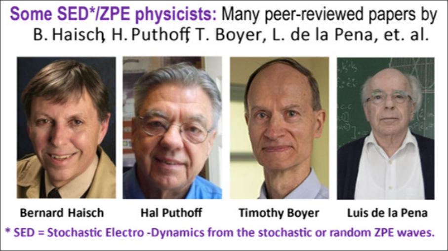 In 1987, Hal Puthoff examined the situation further in this ZPE context. His conclusion carries unusual significance. It reads: “Finally, it is seen that a well-defined, precise quantitative argument can be made that the ground state of the hydrogen atom is defined by a dynamic equilibrium in which the collapse of the state is prevented by the presence of the zero-point fluctuations of the electromagnetic field. This carries with it the attendant implication that the stability of matter itself is largely mediated by the ZPF phenomena in the manner described here, a concept that transcends the usual interpretation of the role and significance of zero-point fluctuations of the vacuum electromagnetic field”. 41 Note that “ZPF” here refers to “zero-point fields” or “zero-point fluctuations.”